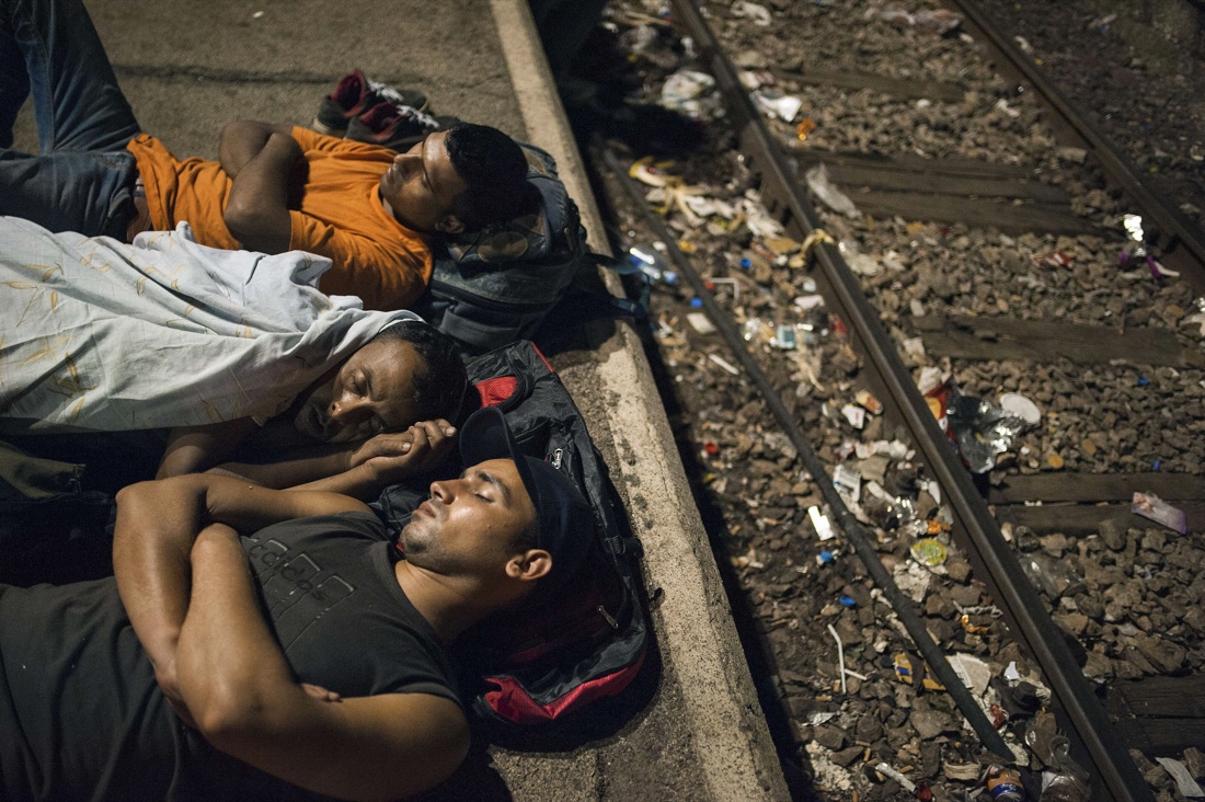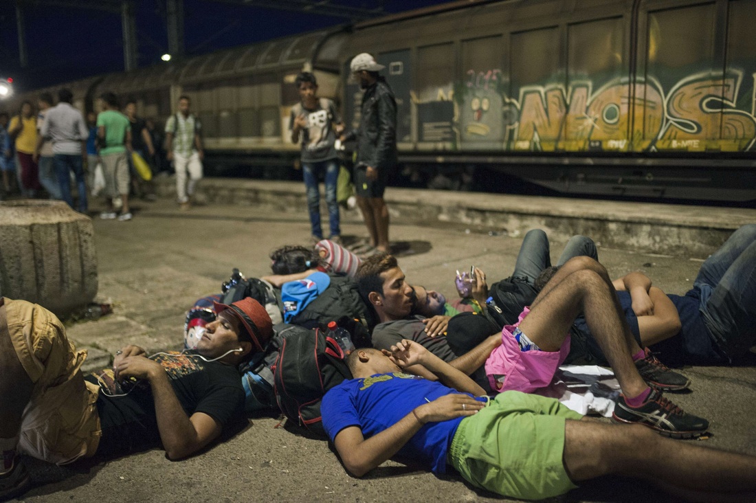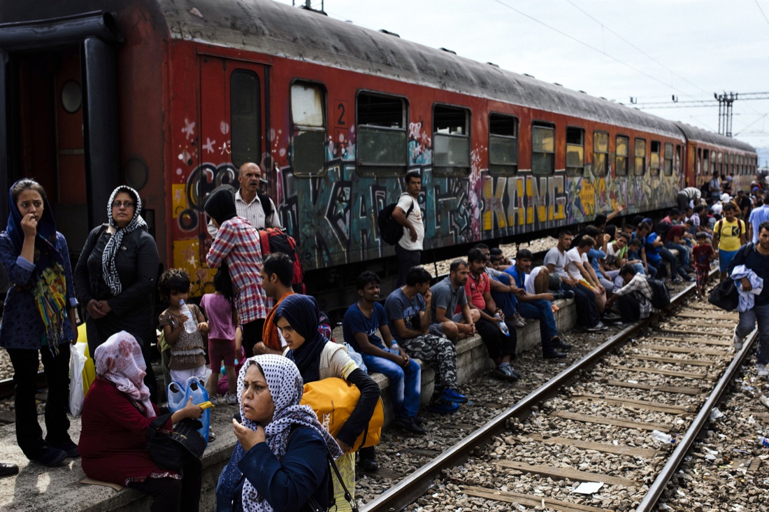 Migranti in attesa del treno alla stazione di Gevgelija, sul confine tra Macedonia e Grecia.