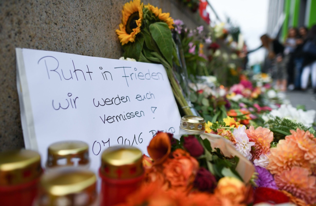 Fiori e candele in ricordo delle vittime della strage al centro commerciale di Monaco di Baviera.
