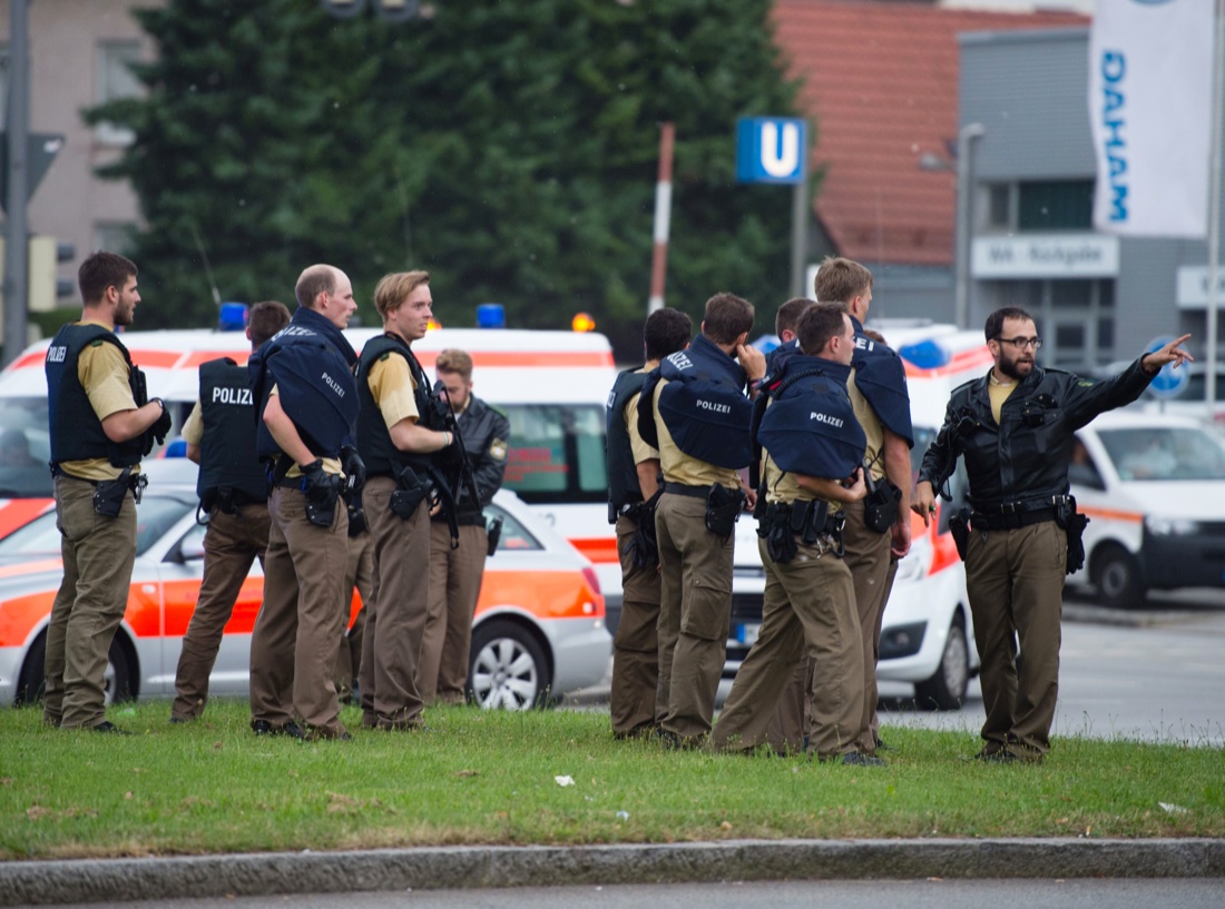 Agenti di polizia sul luogo della sparatoria a Monaco di Baviera, 22 luglio 2016.