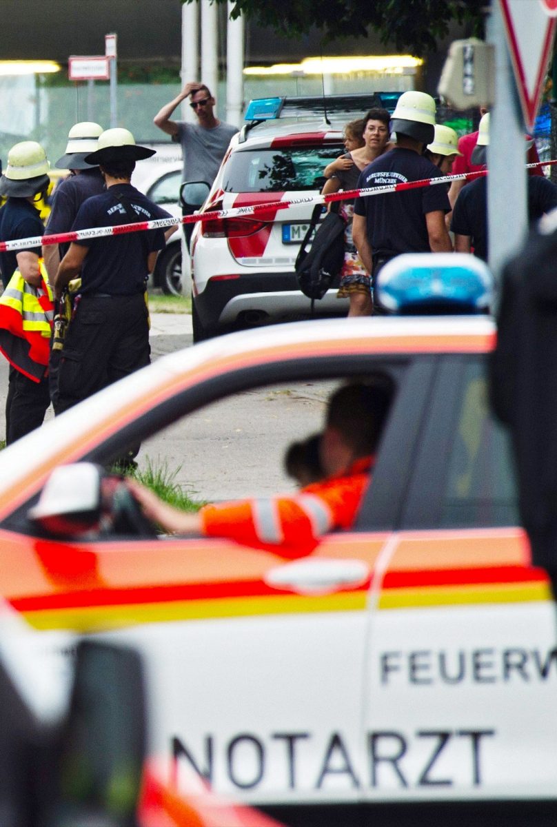 Polizia e mezzi di soccorso sul luogo della sparatoria a Monaco di Baviera, 22 luglio 2016