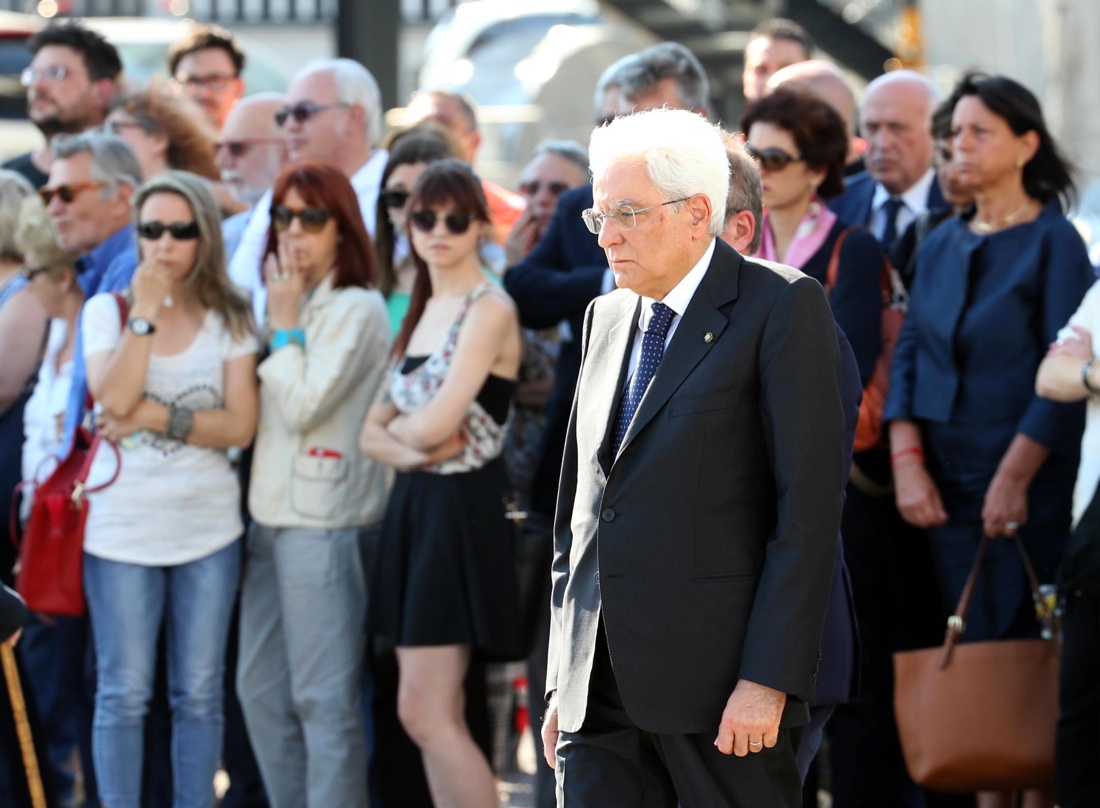Il presidente della Repubblica Sergio Mattarella rende omaggio alle vittime italiane della strage di Nizza all’aeroporto di Malpensa, Milano 20 luglio 2016