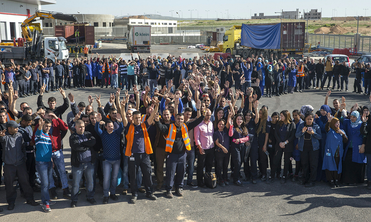 29 febbraio 2016. Gli operai dello stabilimento dell’azienda israeliana SodaStream di Rahat, nel deserto del Negev, riuniti prima della partenza dei loro colleghi palestinesi, che non hanno ottenuto un permesso di lavoro dal governo di Gerusalemme. L’impianto è stato trasferito qui da un insediamento ebraico in Cisgiordania, chiuso nell’ottobre 2015, a seguito della campagna internazionale di boicottaggio contro l’azienda (e contro la sua testimonial Scarlett Johansson). Oltre 500 palestinesi hanno perso il lavoro.