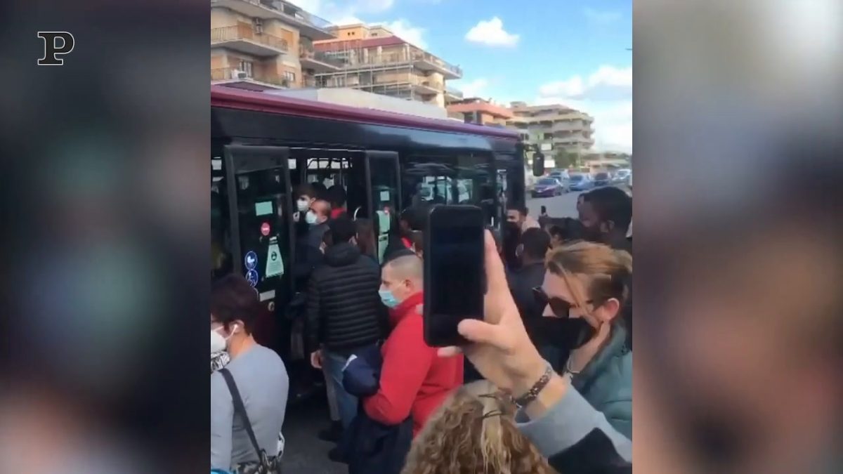 Il trasporto pubblico della Capitale è in ginocchio. Lo dimostrano queste immagini, dove la gente è ammassata sia sul marciapiede che all’interno dell’autobus. La causa dell’assalto ai mezzi di superficie sarebbe l’interruzione del servizio della metro C a causa, parrebbe, di una persona investita da un treno, rimasta incastrata sui binari. Il video sta facendo il giro del web, scatenando le polemiche sulle chiusure di bar, ristoranti, palestre e teatri: a quanto pare non sono la vera e unica causa di assembramento da parte delle persone. Forse anziché chiudere, si legge sul web “sarebbe meglio aumentare il numero di autobus in circolazione”.