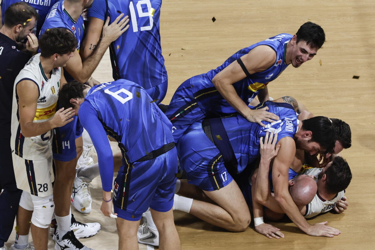 Lacrime di gioia, lacrime azzurre. L’Italia della pallavolo maschile si conferma campione del mondo, ribadendo a tutti che i più forti siamo noi, sia con gli uomini che con le donne. Tre settimane fa l’impresa firmata dalle ragazze di Julio Velasco, adesso i ragazzi di Fefè De Giorgi, uno di quelli che faceva parte della squadra allenata dal ct argentino negli anni novanta. L’ultimo ostacolo spazzato via nella solita maniera. Cuore, concentrazione e grande pallavolo. Nella pallavolo, come nel tennis, non ce n’è per nessuno. Neanche la Bulgaria ha potuto fermare una squadra che aveva in testa un solo obiettivo: vincere. Una vittoria quasi mai in discussione: 22 punti di Romanò e 19 di Bottolo sono i migliori realizzatori di una partita in cui gli azzurri si sono “assentati” solo un set. Per il resto hanno controllato la Bulgaria a muro, limitando spesso Alex Nikolov e sfruttando la maggiore varietà in attacco. Micidiali in battuta (7 ace di Bottolo, 5 di Romanò) e bravi con Giannelli a dettare i tempi del gioco non lasciando scampo alla Bulgaria. Festeggia anche il presidente della Repubblica Mattarella: “Bravi, vi aspetto al Quirinale”.