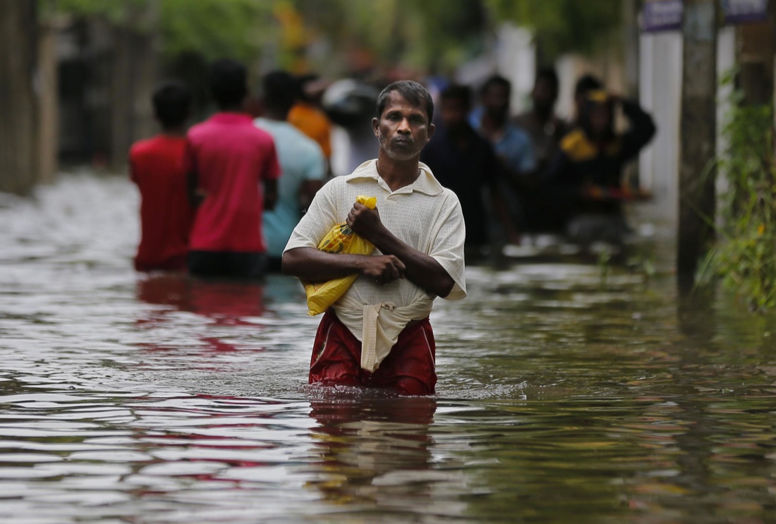 Una strada ormai sommersa dall’acqua a Colombo, Sri Lanka