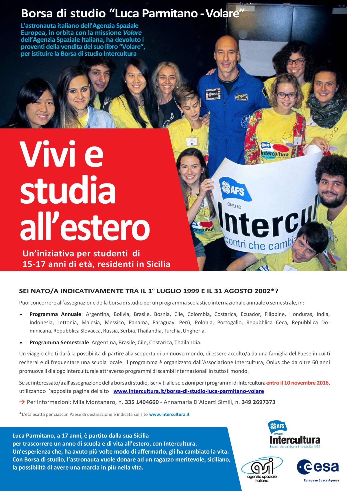 65 i Paesi del mondo da scegliere, 2.000 i posti a disposizione, più di 1.400 le borse di studio totali o parziali. Circa la metà provengono dall’apposito fondo di Intercultura per consentire la partecipazione ai programmi degli studenti più meritevoli e bisognosi di sostegno economico. A queste se ne uniscono le altre centinaia, tra borse di studio totali e contributi sponsorizzati. Anche l’astronauta Luca Parmitano, ex borsista di Intercultura, quest’anno ha messo a disposizione i proventi del suo libro Volare per una borsa di studio a disposizione di uno studente che voglia vivere quest’esperienza.