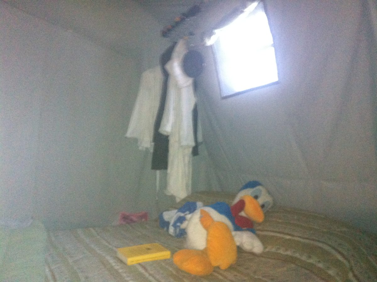 “Ci sentiamo dei carcerati – si lamenta Eva – non ci permettono nemmeno di ricevere le visite dei nostri parenti. Il cibo è scadente, siamo in 10 in una tenda”. Eva piange per sua figlia Gloria che ha 16 anni e ci accompagna a vedere la sua “casa”. Si scusa per il disordine, ci mostra il suo “armadio”, una sedia con tutti i vestiti ammonticchiati sopra. Ha voglia di studiare per arrivare preparata a settembre quando ricomincerà la scuola, ma i vigili del fuoco le hanno impedito di andare a recuperare i suoi libri in casa.