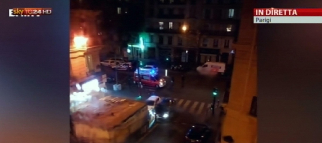 Un frame tratto da Sky mostra i momenti dopo le sparatorie a Parigi, 13 novembre 2015.