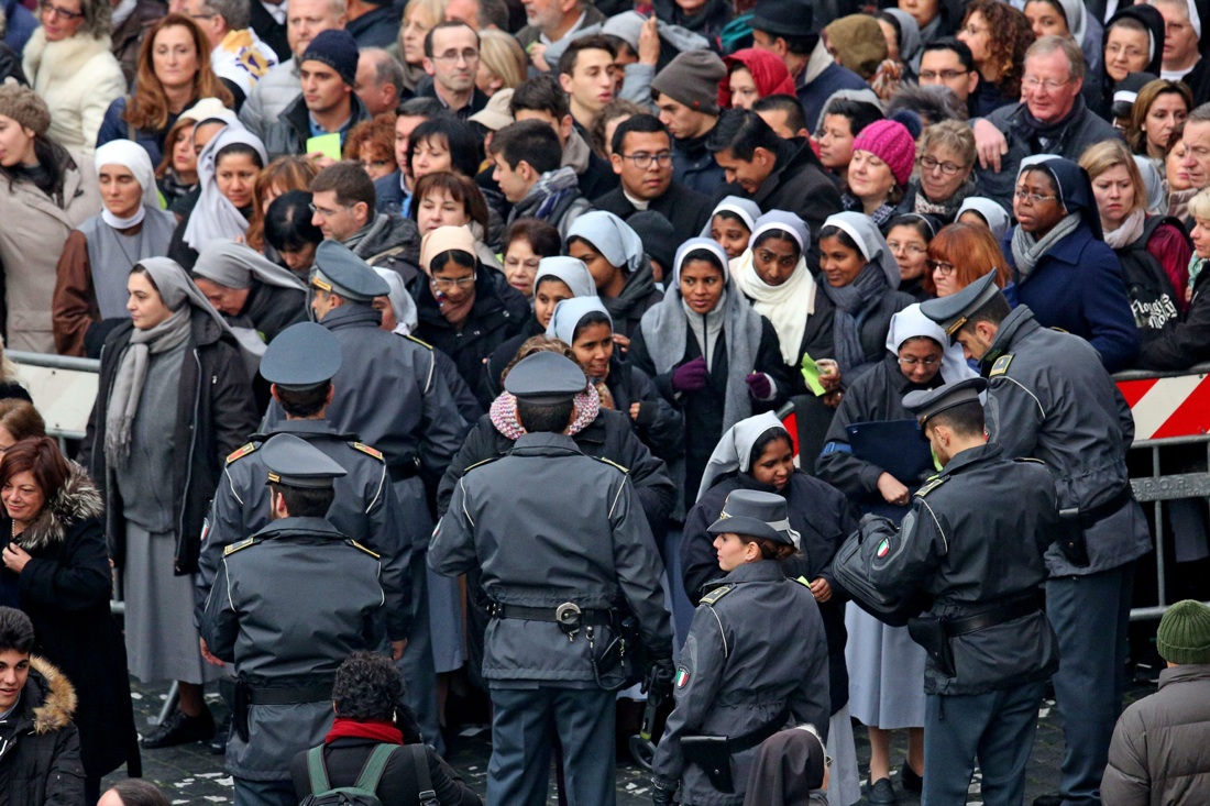 I controlli di sicurezza i Piazza San Pietro per l’apertura del Giubileo – 8 dicembre 2015