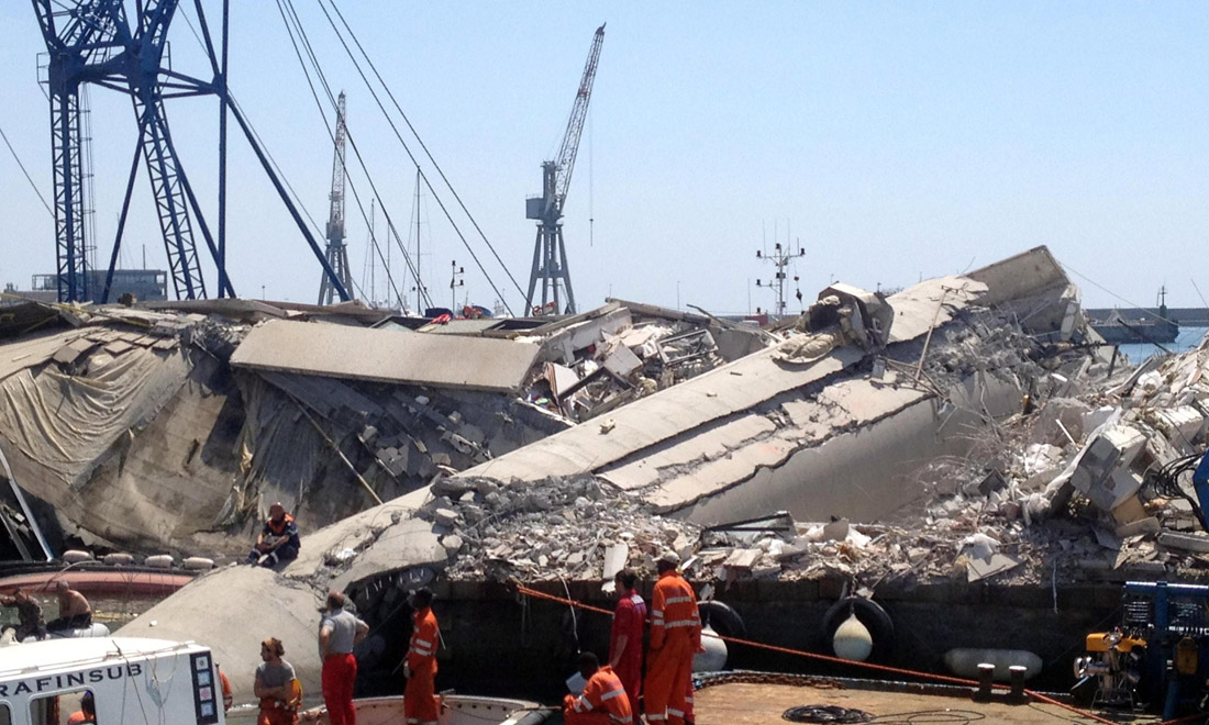 Le macerie della Torre piloti abbattuta il 7 maggio 2013 dalla portacontainer Jolly Nero a Genova.