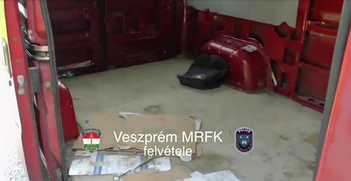 Un fermo immagine tratto dal video della polizia ungherese mostra l’operazione che ha portato al fermo di un italiano che portava dei migranti nel suo furgone nei pressi del lago di Balaton in Ungheria