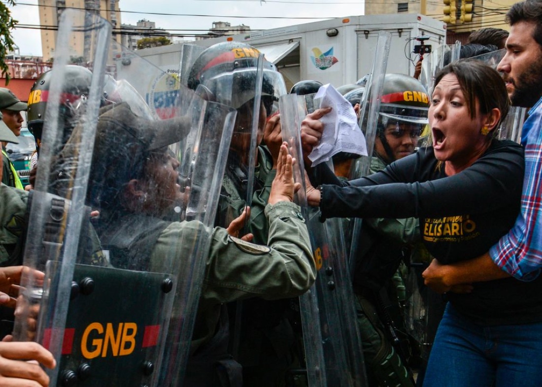 La deputata dell’opposizione venezuelana Amelia Belisario (seconda da destra) contro la Guardia Nazionale e Caracas – 30 marzo 2017