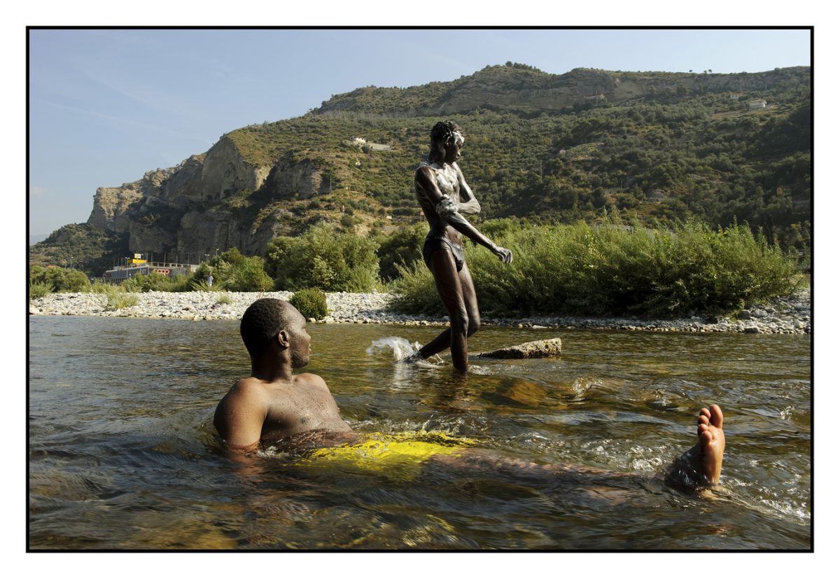 Ventimiglia (Imperia), luglio 2017: Emergenza migranti. Uno shooting fotografico sulla spiaggia.