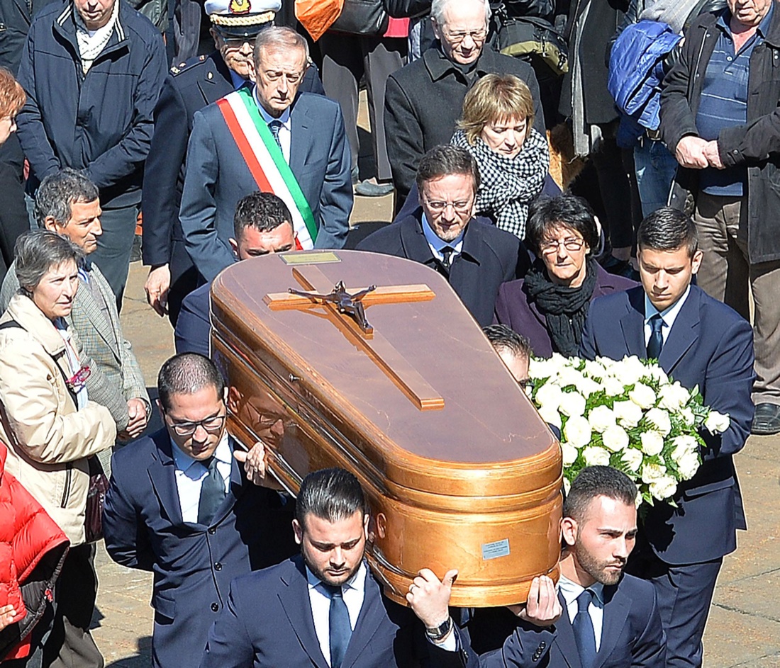Il feretro con Serena Saracino viene portato fuori alla fine della cerimonia funebre celebrata presso la chiesa Gran Madre di Dio, Torino, 24 marzo 2016