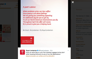 Galleria foto 'Royal Jordanian Airlines risponde con ironia all’electronics ban di Trump' - foto 3