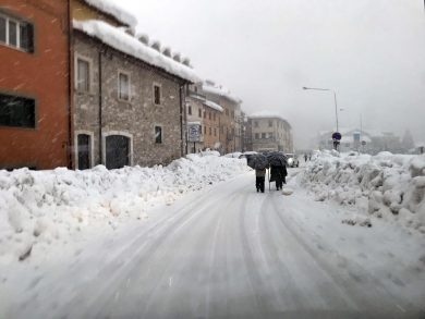 Vigili dell fuoco all’opera in Abruzzo. Nelle zone al confine tra Lazio, Marche e Abruzzo interessate dalle scosse di questa mattina stanno operando già 750 vigili che erano presenti in zona per gli interventi di messa in sicurezza dopo i terremotidi agosto e novembre. L’Aquila, 18 gennaio 2017
