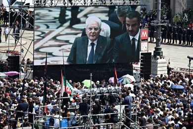Galleria foto Articolo – foto 1 La premier Giorgia Meloni abbraccia i figli di Silvio Berlusconi (Getty Images) Leggi l’articolo