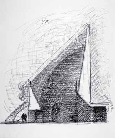 Galleria foto Articolo – foto 1 Schizzo per la chiesa parrocchiale di San Giovanni Battista a Mogno, frazione di Lavizzara, nel Cantone Ticino. Leggi l’articolo