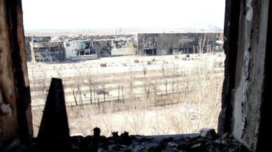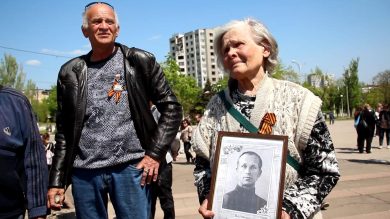 Galleria foto Articolo – foto 1 Due residenti di uno dei quartieri a ridosso dell’Azovstal, l’8 maggio 2022 (Maurizio Vezzosi). Leggi l’articolo