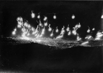 Galleria foto Articolo – foto 1 Genova illuminata dai bengala durante una delle incursioni del 1942 (Wikicommons) Leggi l’articolo