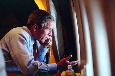 Galleria foto Articolo – foto 1 George W. Bush sull’Air Force One il 16 settembre 2001, mentre lascia la base aerea di Offutt (Getty Images). Leggi l’articolo