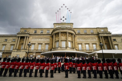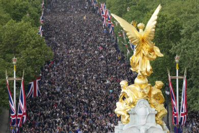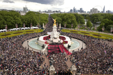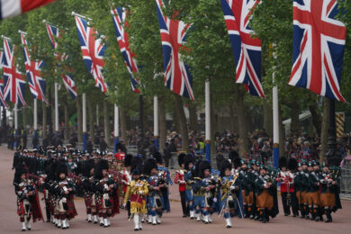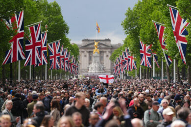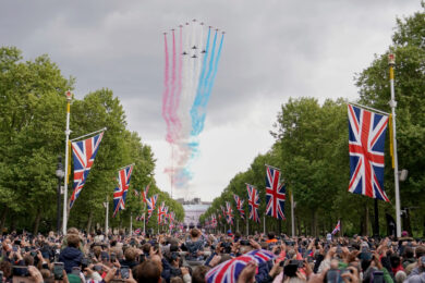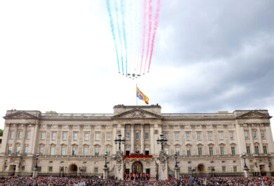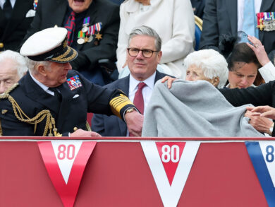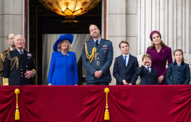 LONDON, ENGLAND – MAY 05: Princess Charlotte of Wales, Prince George of Wales and Prince Louis of Wales during the military procession to mark the 80th anniversary of VE Day on May 05, 2025 in London, England. The King and Queen, joined by Members of the Royal Family, will take part in events from May 5th to May 8th to commemorate the 80th anniversary of VE Day, which signalled the end of the Second World War in Europe. (Photo by Chris Jackson/Getty Images)