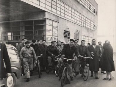Galleria foto Articolo – foto 1 Operai all’uscita di una fabbrica milanese alla fine degli anni ’40 (Lombardia Beni Culturali) Leggi l’articolo