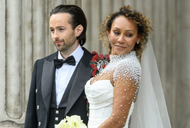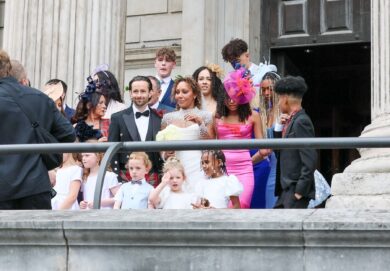 BGUK_3290747 – London, UNITED KINGDOM Melanie Brown, AKA Scary Spice, celebrates her wedding to Rory McPhee surrounded by friends and family. The singer beams with joy as the group gathers for photos following the ceremony. The intimate moment captures the love and unity of the day.