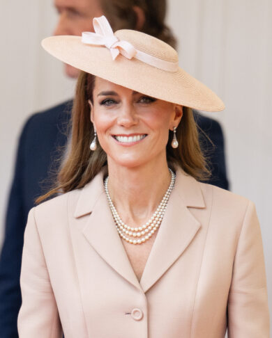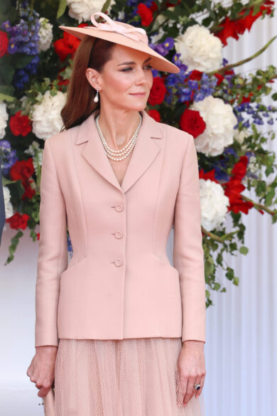 WINDSOR, ENGLAND – JULY 08: Catherine, Princess of Wales awaits the arrival of President Emmanuel Macron and Mrs Brigitte Macron on July 08, 2025 in Windsor, England. President Emmanuel Macron and Mrs Brigitte Macron visit the UK in the first visit State Visit made by France in 17 years. They are staying at Windsor Castle, hosted by King Charles III and Queen Camilla, and a banquet will be held there in their honour. The Macrons will visit Imperial College, and the President will address Parliament during his stay. (Photo by Chris Jackson/Getty Images)