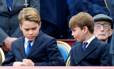 LONDON, UNITED KINGDOM – JUNE 05: (EMBARGOED FOR PUBLICATION IN UK NEWSPAPERS UNTIL 24 HOURS AFTER CREATE DATE AND TIME) Prince Louis of Cambridge ‘thumb’s his nose’ and sticks his tongue out at his mother Catherine, Duchess of Cambridge as they attend the Platinum Pageant on The Mall on June 5, 2022 in London, England. The Platinum Jubilee of Elizabeth II is being celebrated from June 2 to June 5, 2022, in the UK and Commonwealth to mark the 70th anniversary of the accession of Queen Elizabeth II on 6 February 1952. (Photo by Max Mumby/Indigo/Getty Images)