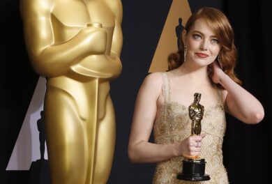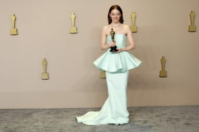epa11213501 Emma Stone, winner of the Best Actress in a Leading Role award for ‘Poor Things,’ holds her Oscar in the press room during the 96th annual Academy Awards ceremony at the Dolby Theatre in the Hollywood neighborhood of Los Angeles, California, USA, 10 March 2024. The Oscars are presented for outstanding individual or collective efforts in filmmaking in 23 categories. EPA/ALLISON DINNER