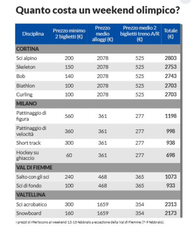 Milano-Cortina, prezzi folli per un weekend olimpico: fino a 1.800 euro per alloggio, trasporti e biglietti