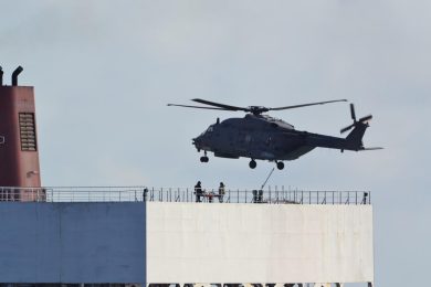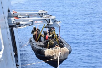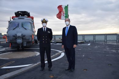 Galleria foto Articolo – foto 1 L’ Ambasciatore italiano in Spagna Riccardo Guariglia sul ponte della Martinengo con il Capitano di Fregata Daniele Ruggieri al termine della missione (Marina Militare) Leggi l’articolo