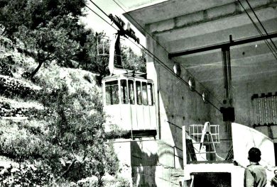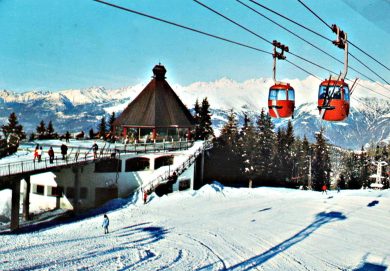 Galleria foto Articolo – foto 1 In una cartolina storica la stazione di monte della telecabina Badoni bifune ad ammorsamento automatico Aprica-Palabione Leggi l’articolo