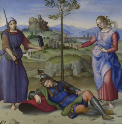 Galleria foto Articolo – foto 1 Raffaello, Il sogno del cavaliere,1504 (© The National Gallery, London) Leggi l’articolo