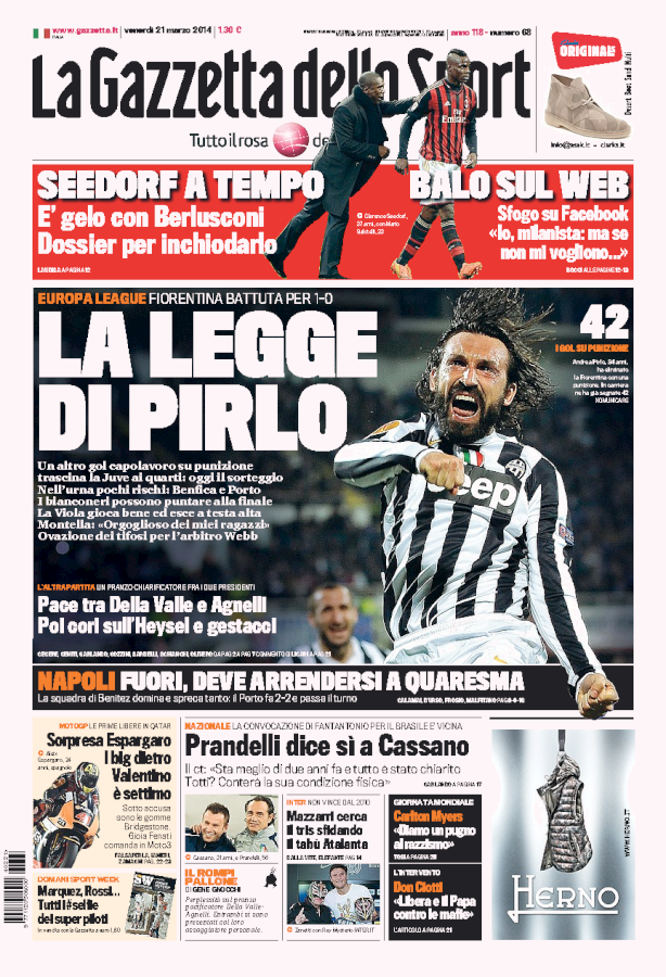 La Juventus che batte la Fiorentina e continua la sua corsa in Europa League. Il Napoli beffato dal Porto e che si deve fermare tra mille rimpianti. La situazione caotica in casa Milan, dove si raccoglie un dossier sugli errori di Seedorf che potrebbe essere licenziato per giusta causa…