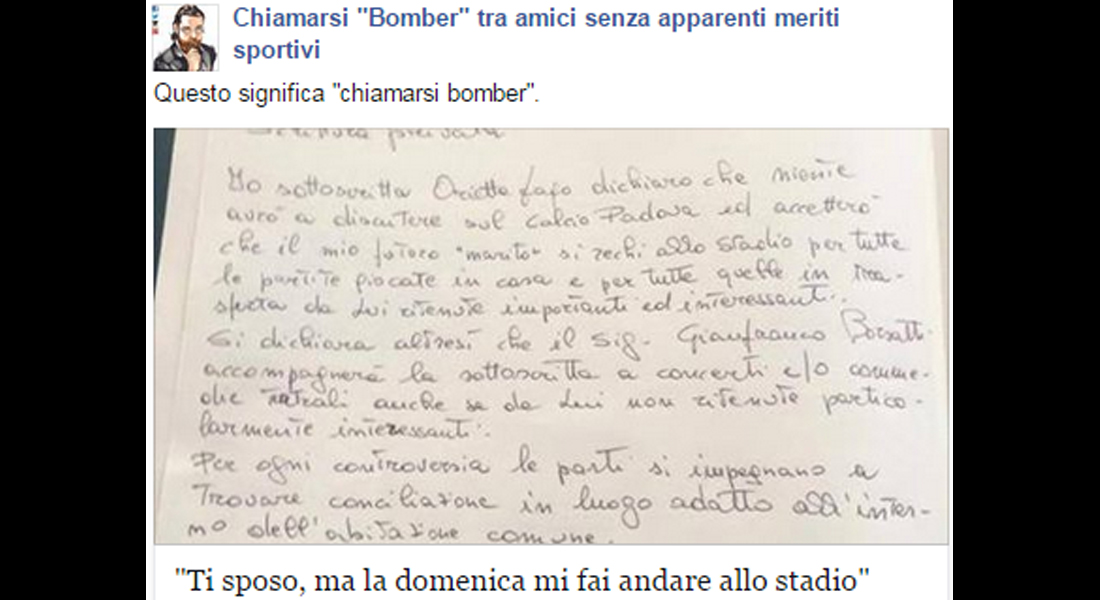 Chiamarsi Bomber 28 Aprile 2015 – Lettura: 0 minuti Il contratto pre-matrimoniale del tifoso, ma anche il lato hot della panchina e i rischi di cheerleader troppo focose… © Riproduzione Riservata