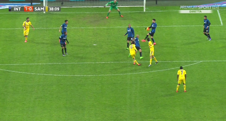 Manca un rigore netto alla Sampdoria e l’episodio avrebbe potuto cambiare il corso della partita. Accade sull’q-0 per l’Inter quando un tiro di Correa dal limite dell’area di rigore viene intercettato con il braccio da D’Ambrosio: penalty netto che Massa e addizionale (in linea perfetta) non colgono. In precenza è sbagliato non espellere Ranocchia che, già ammonito, frana addosso a Biabiany lanciato in contropiede per fermarlo: fallo tattico intenzionale. Meritava il secondo cartellino giallo. Il 2-0 di Miranda assegnato dalla goal line technology ma il pallone era dentro in maniera evidente anche a occhio nudo.