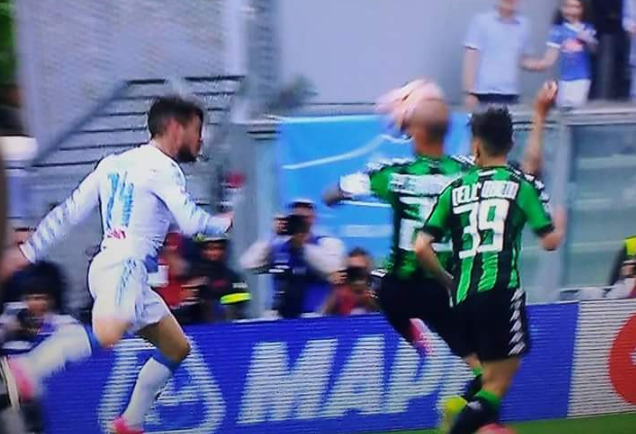 Giornata difficile per gli arbitri italiani, con partite ricche di episodi al limite e le proteste che crescono con l’avvicinarsi della fine del campionato. Il campo più caldo della domenica è stato Sassuolo-Napoli affidata da Messina a Damato. Sarri protesta per un rigore su Mertens che le moviole colgono (anche se non c’è l’unanimità del giudizio). Giusto, invece, non punire nel finale l’intervento di Cannavaro con la testa e non con la mano nel finale.