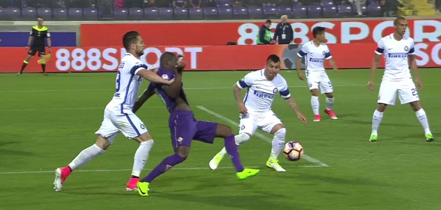 In Fiorentina-Inter dall’andamento folle era da annullare il 5-2 di Babacar in posizione di fuorigioco non colta dall’assistente che indice Valeri in errore.