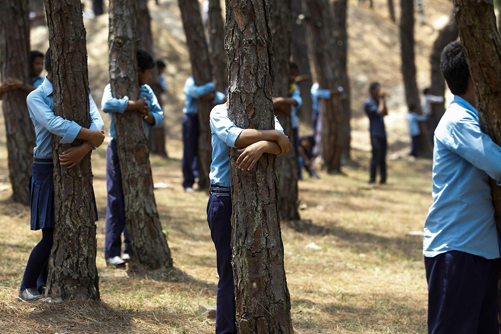 Per celebrare la Giornata mondiale dell’ambiente, un gruppo di di 2.001 persone, composto da bambini, ragazzi delle scuole superiori e rappresentanti di varie organizzazioni ambientaliste, si è dato appuntamento nella foresta di Gokarna, alla periferia di Kathmandu, la capitale del Nepal, per partecipare a un’iniziativa contro la deforestazione, all’insegna dello slogan “Salviamo l’ambiente, salviamo gli alberi”, nel corso della quale ciascuno dei partecipanti ha abbracciato un albero per circa due minuti, anche nel tentativo di stabilire un record ed entrare nel Guinness dei Primati. Le foto di Narendra Shrestha .