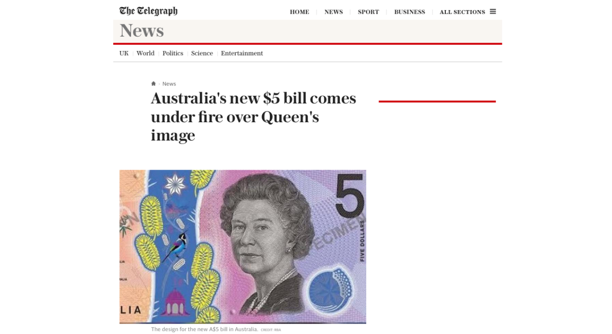“Anche la Regina pare turbata dall’idea di essere ancora su un biglietto da 5 dollari australiani”, scrive un utente di Twitter a proposito della nuova banconota che verrà messa in circolazione a partire da settembre in Australia. Non è però il solo a non essere convinto del buon lavoro fatto dal conio della Banca Centrale.