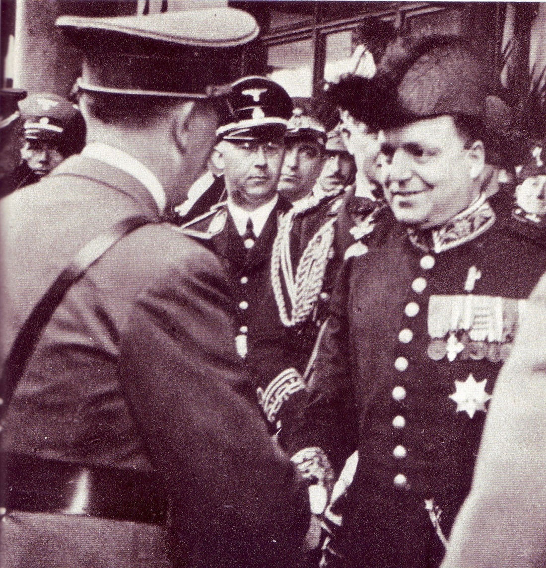 Hitler stringe la mano a Giuseppe Mastromattei, prefetto di Bolzano e uno dei massimi fautori dell’italianizzazione. Dietro di Loro il capo delle SS Himmler