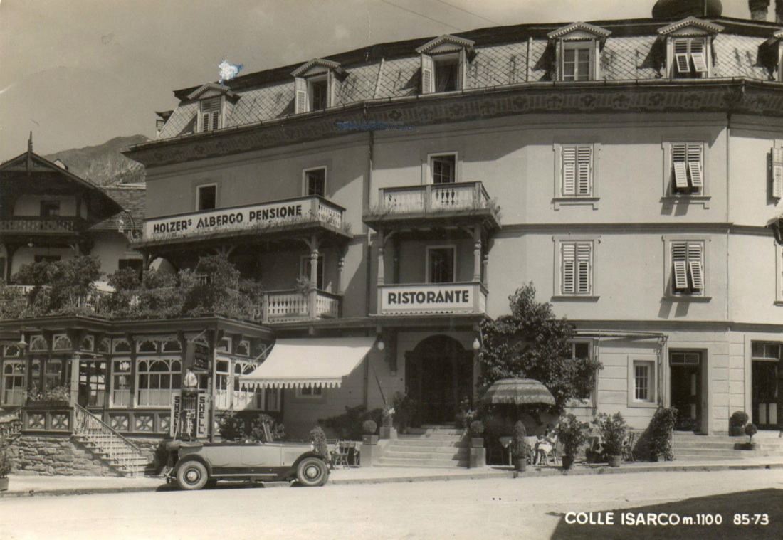 Insegne esclusivamente italiane a Colle Isarco negli anni ’30 in una foto d’epoca.
