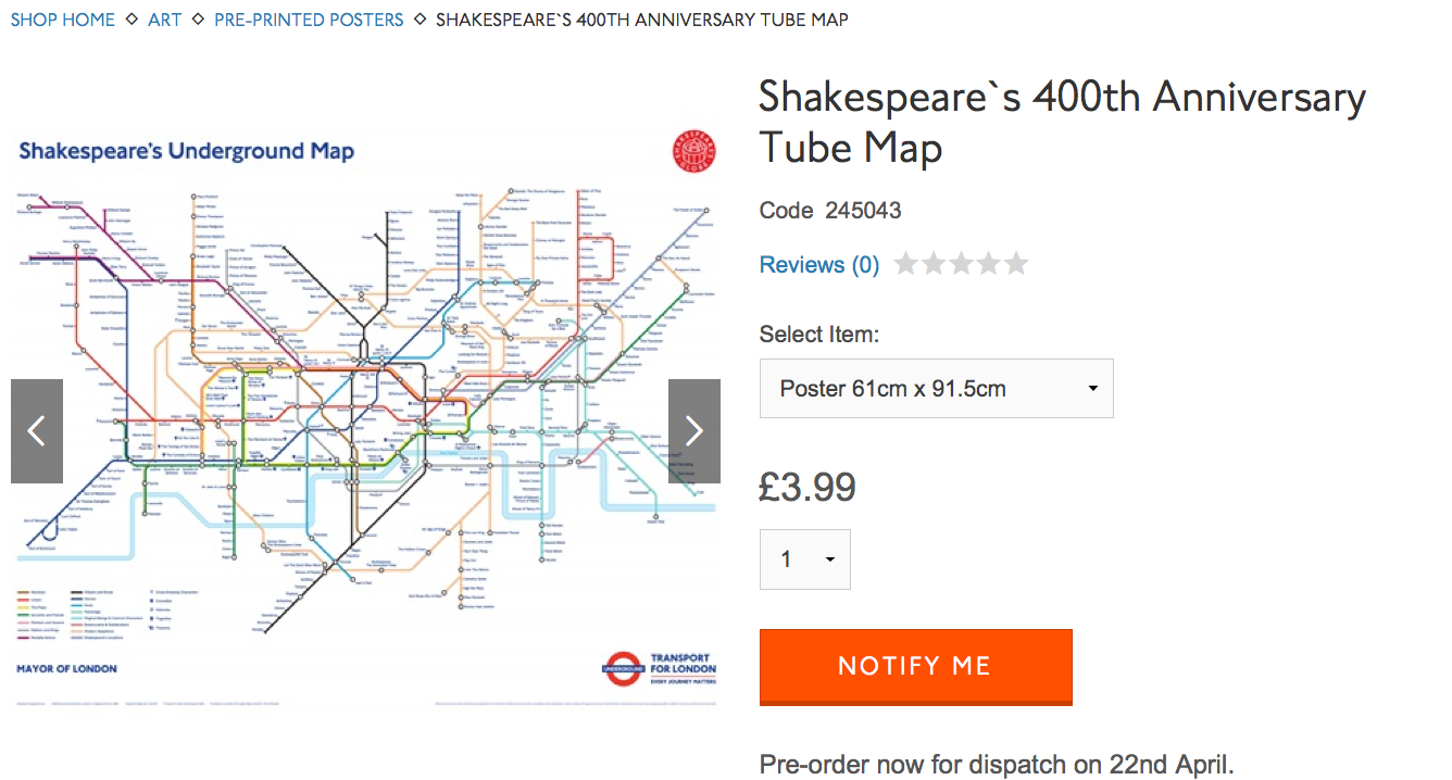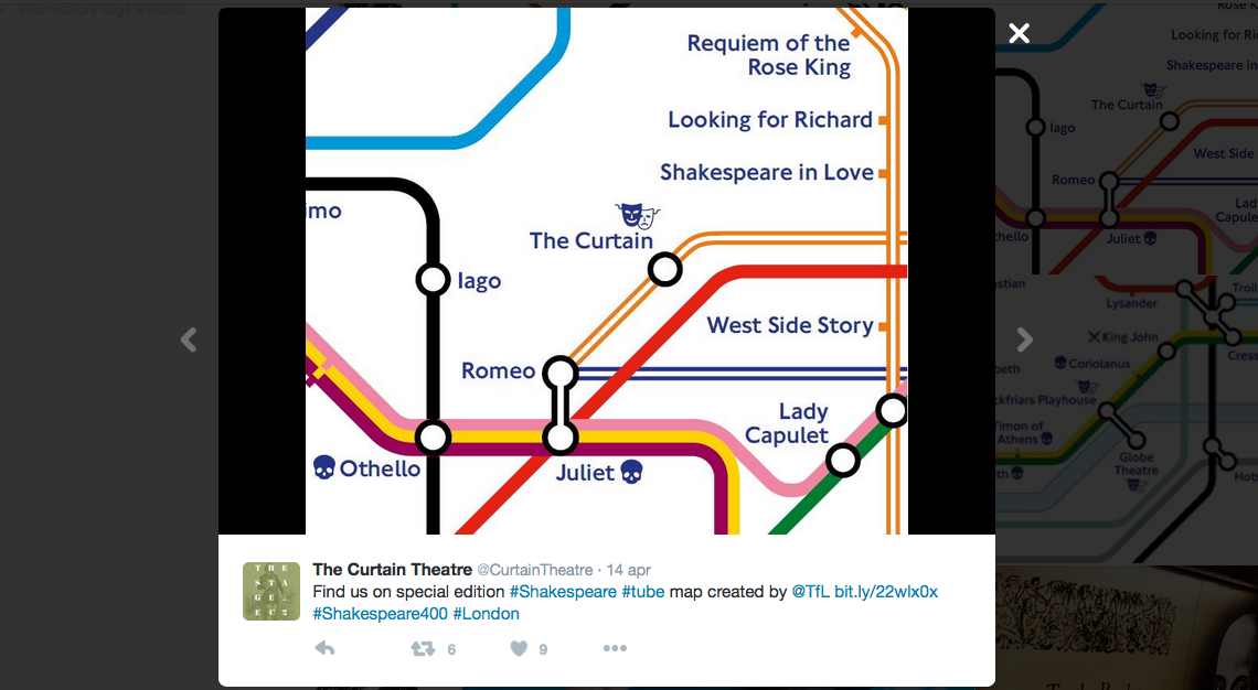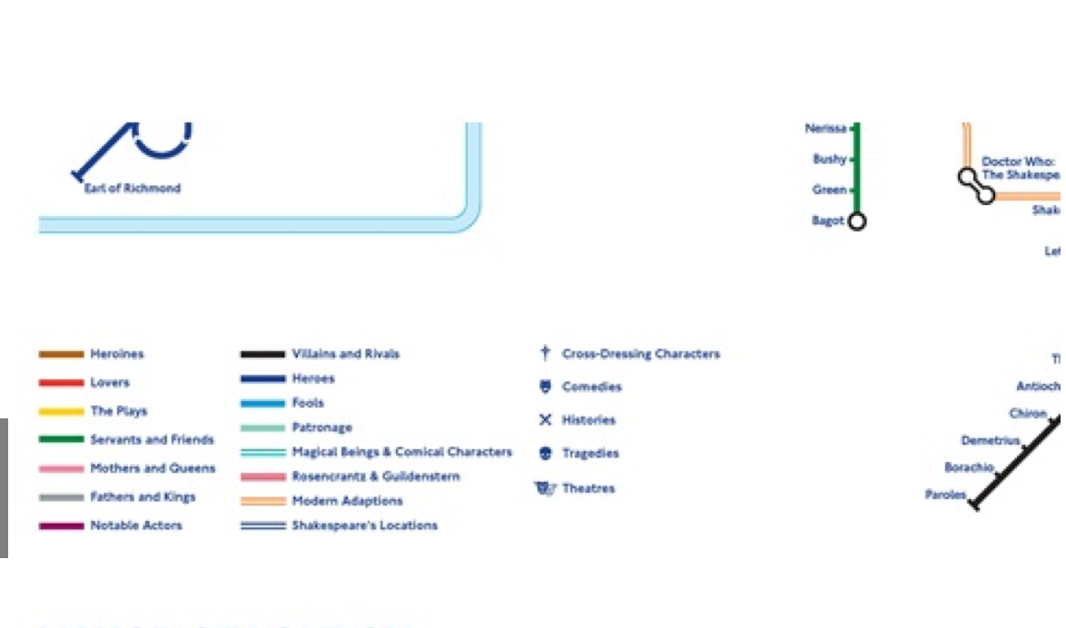E così dallo scorso lunedì la società dei trasporti londinese in collaborazione con il Globe ha messo in vendita una mappa della Tube della città in versione shakespeariana.
