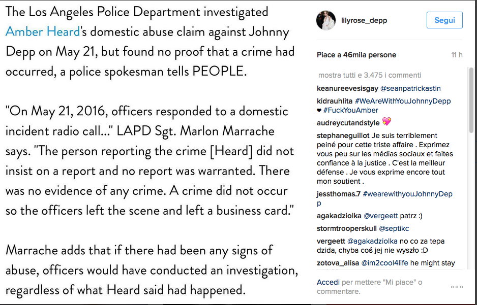 Negli ultimi giorni anche Vanessa Paradis e Lily Rose Depp si erano espresse a favore dell’innocenza di Johnny.