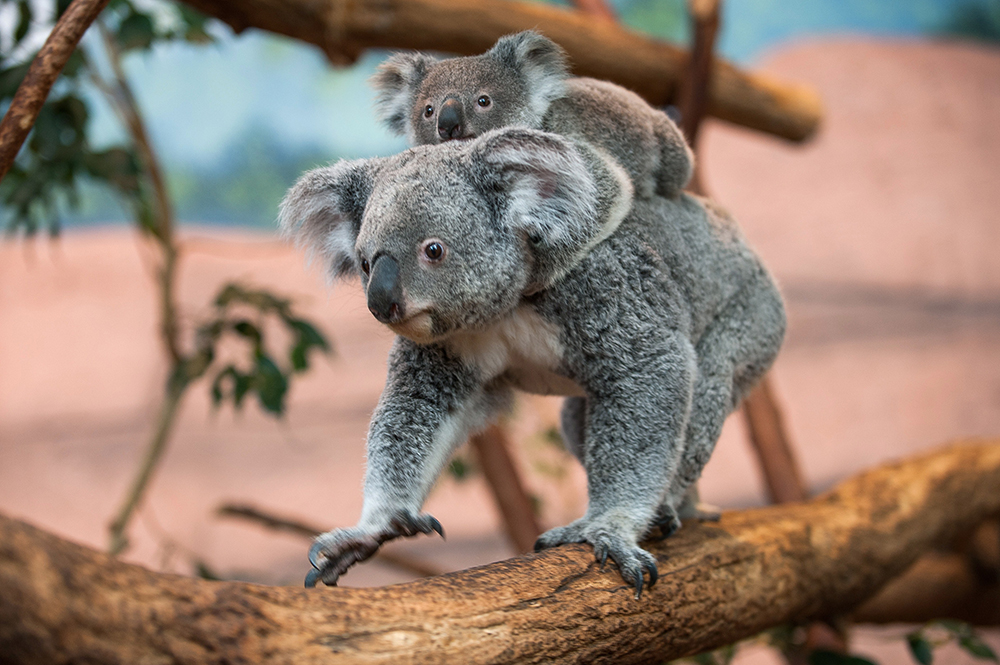 Una piccola koala aggrappata alla madre, un lemure coronato, una cicogna e uno scoiattolo in Baviera, dei colibrì in un cortile di Los Angeles…