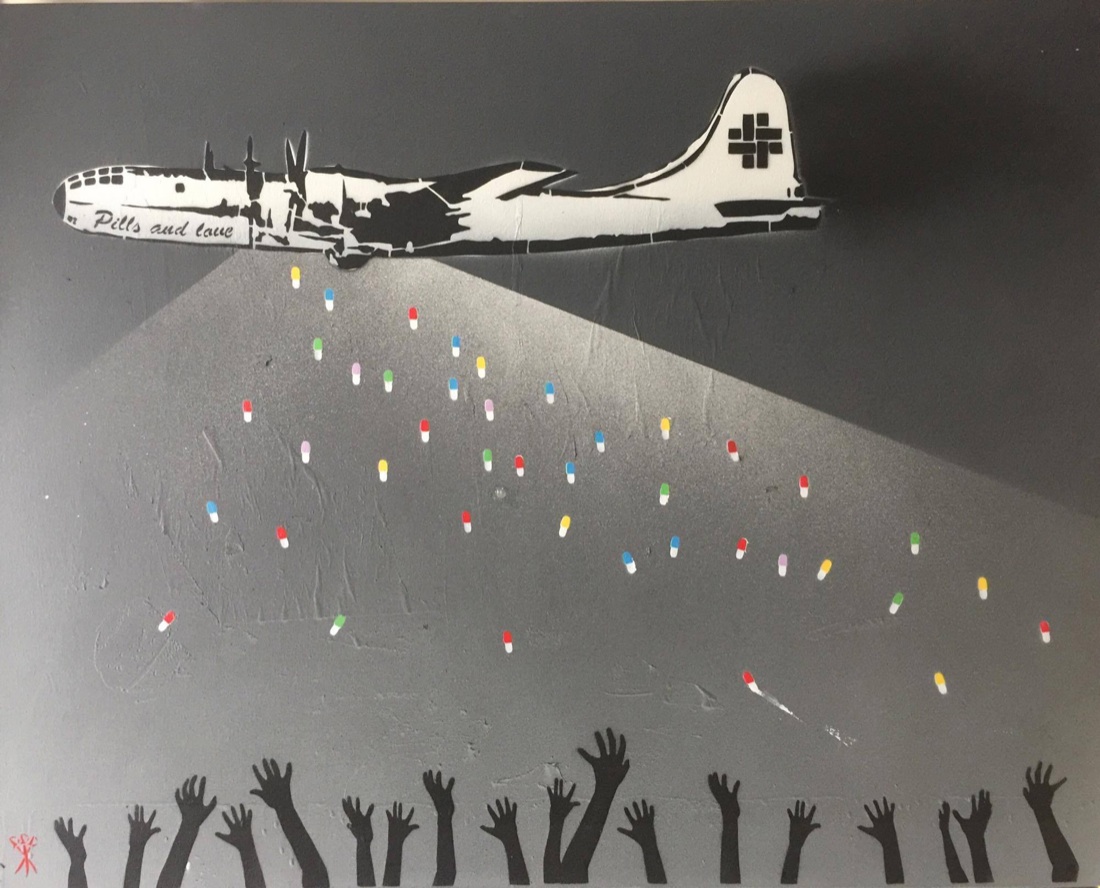 Mr. Save the wall, Pills and Love, 100 x 80 | spray su tela