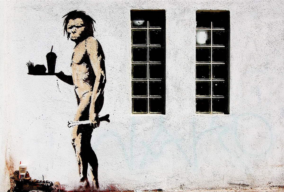 L’uomo delle caverne con cibo da fast-food: l’originale di Banksy