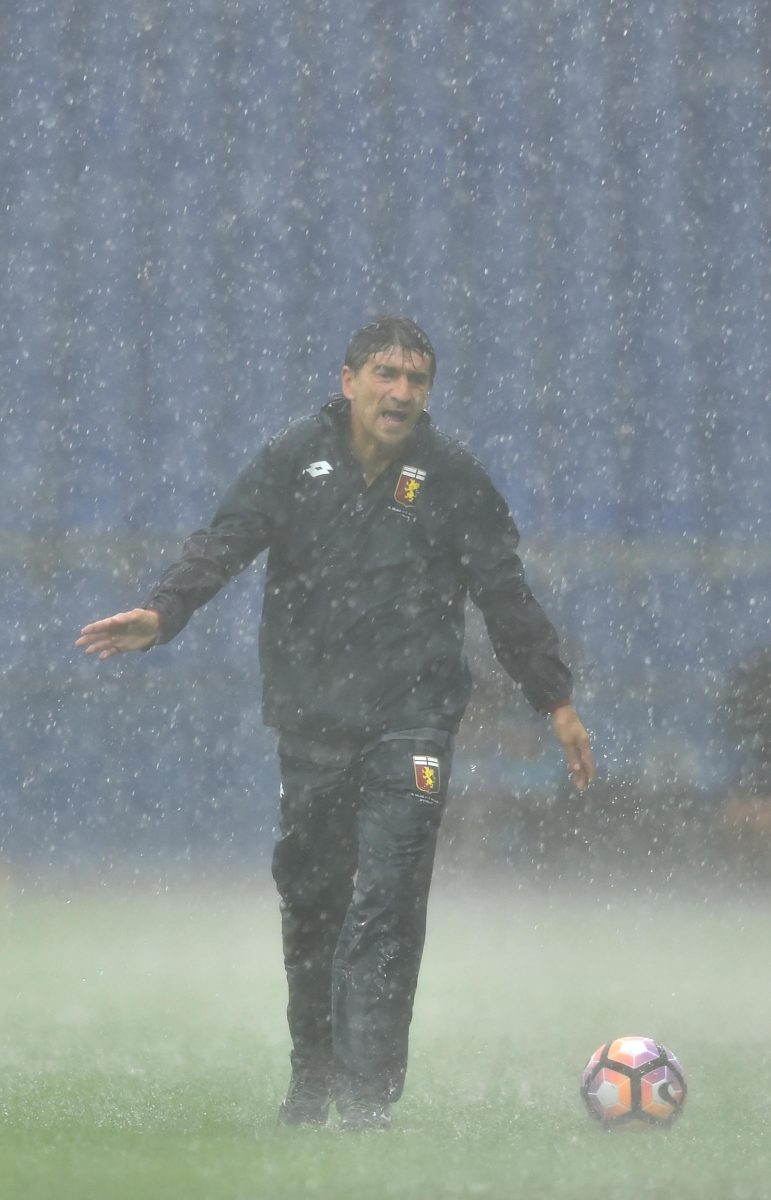 Genoa-Fiorentina: Juric sul terreno di gioco di Marassi diventato impossibile per pioggia a grandine